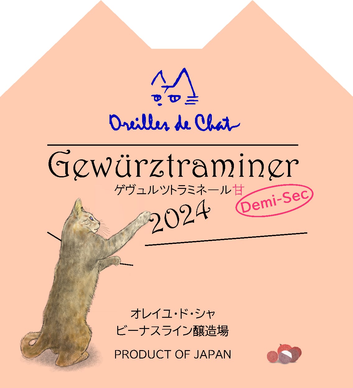 茅野市産ゲヴュルツトラミネール100%。ジュースリザーブにより、甘口ワインに。品種特有のアロマはもちろんのこと、果汁由来のフルーツ香。